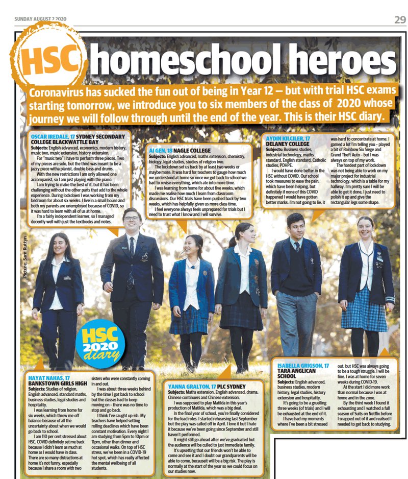 The Sunday Telegraph has chosen Tara as one of six schools to take part in their series on the HSC Class of 2020.